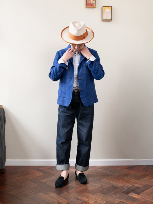Irish Linen Worker Jacket / Blue Herringbone