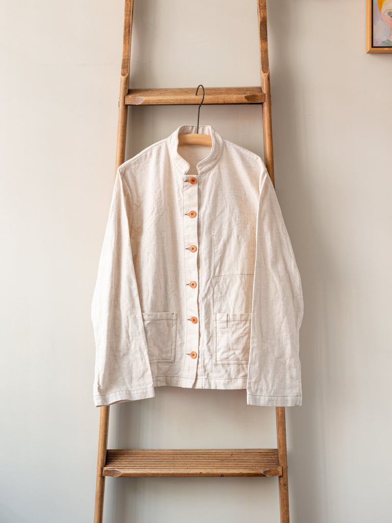 Cotton 50% Linen 50% mix fabric with natural Nep 250gsm, woven in England