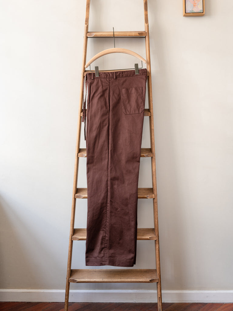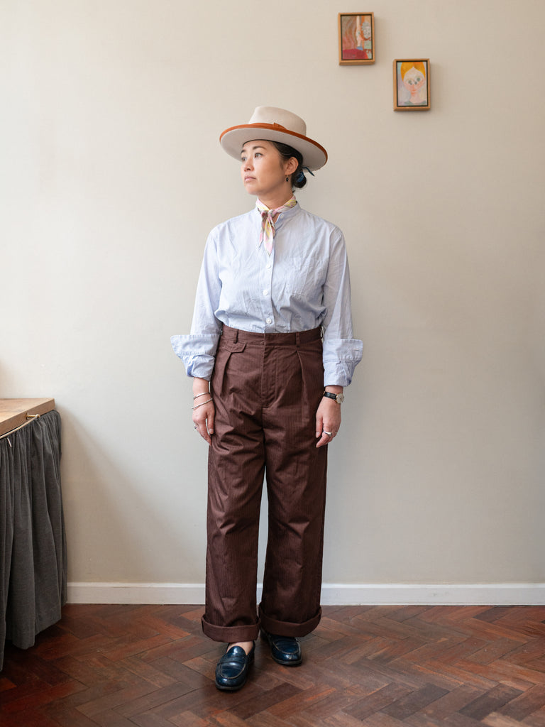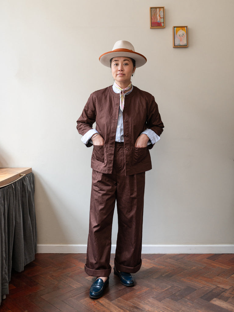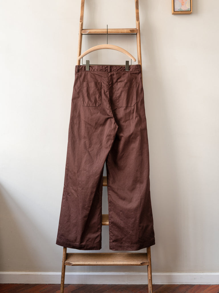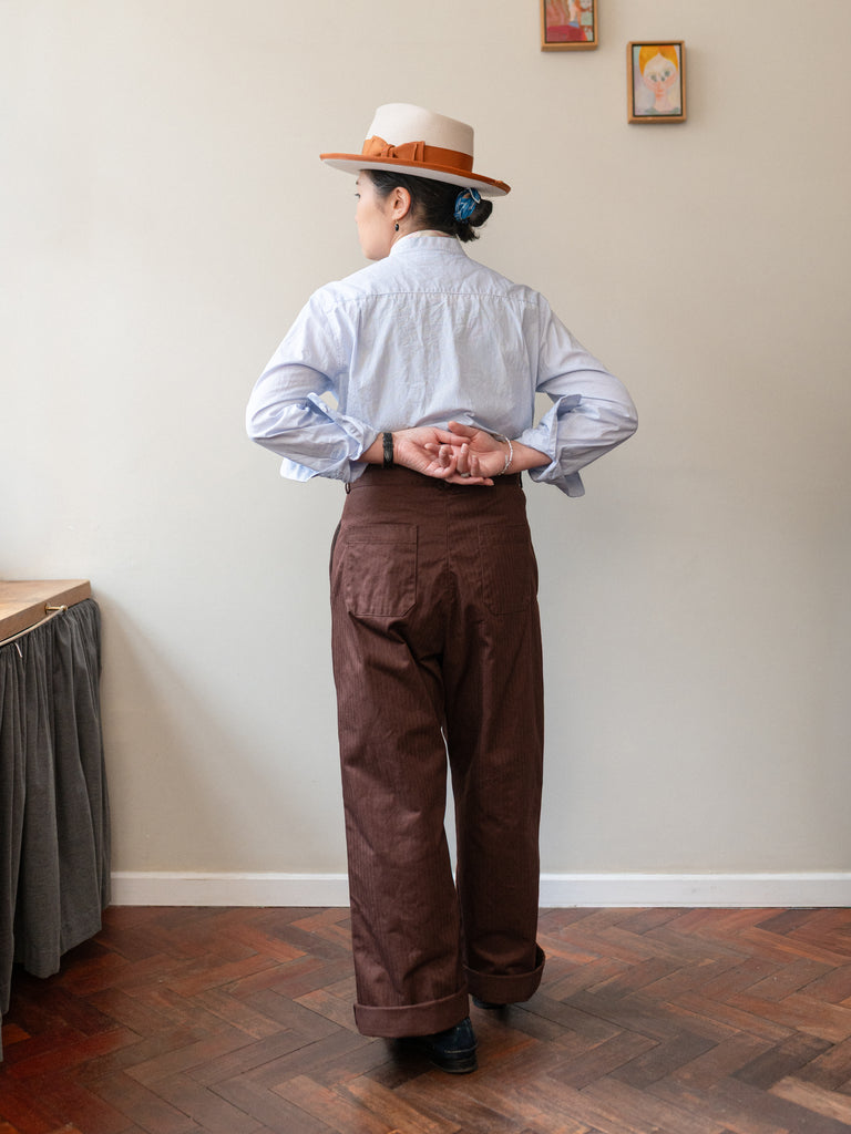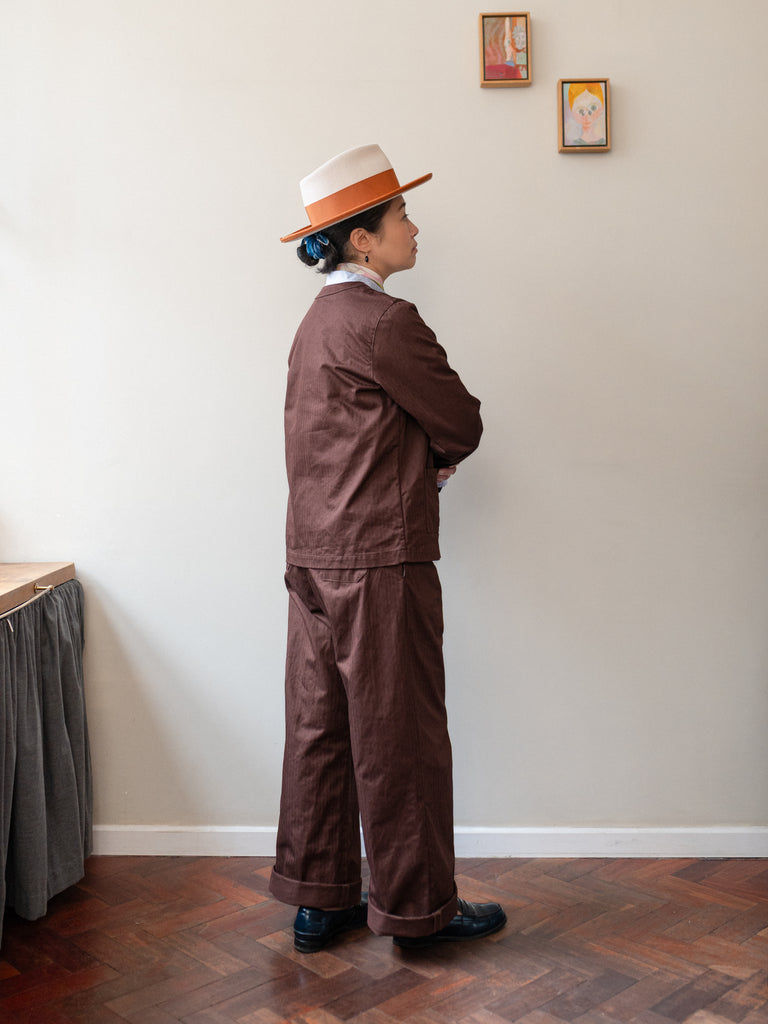 Flap coin pocket on front, two tuck pleats, five belt loops, zip fly