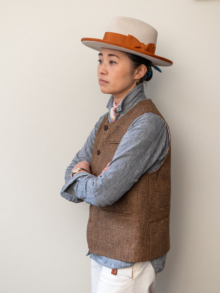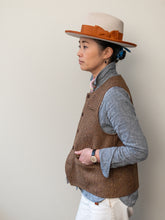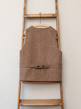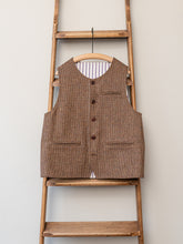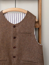 Colenimo classic reversible vest in brown tweed and striped cotton twill