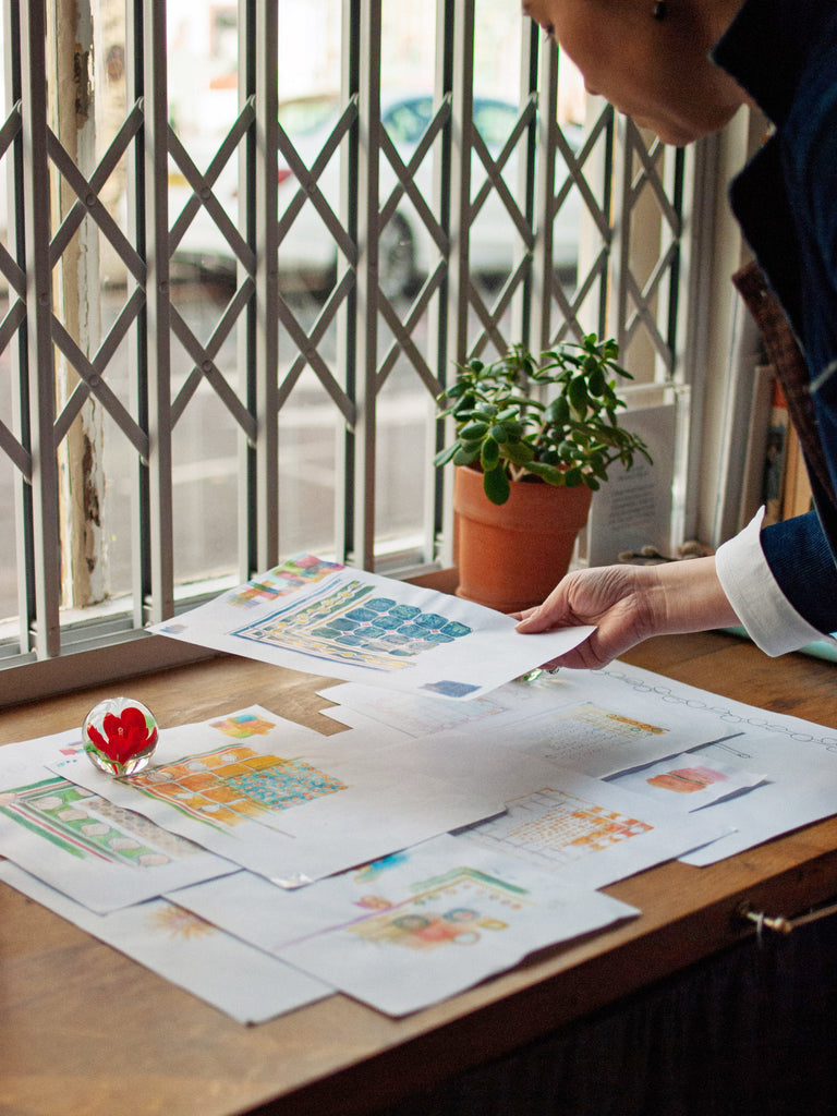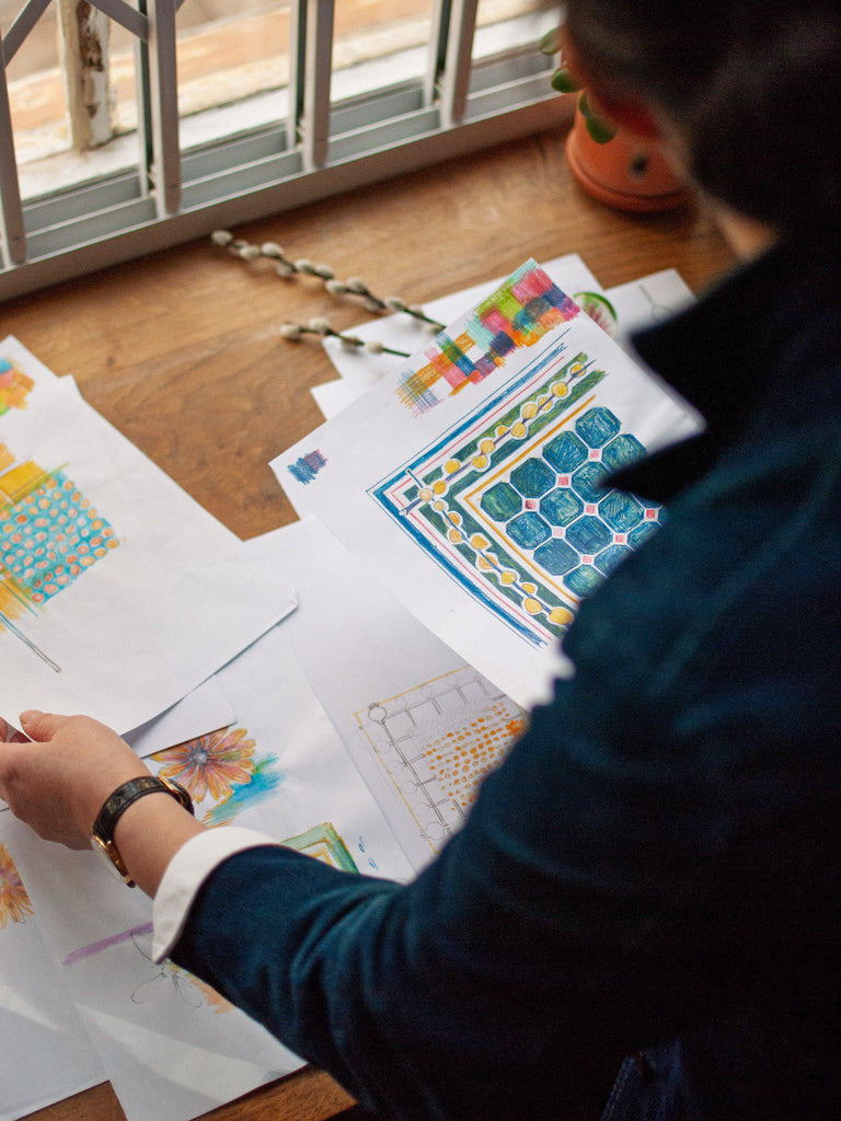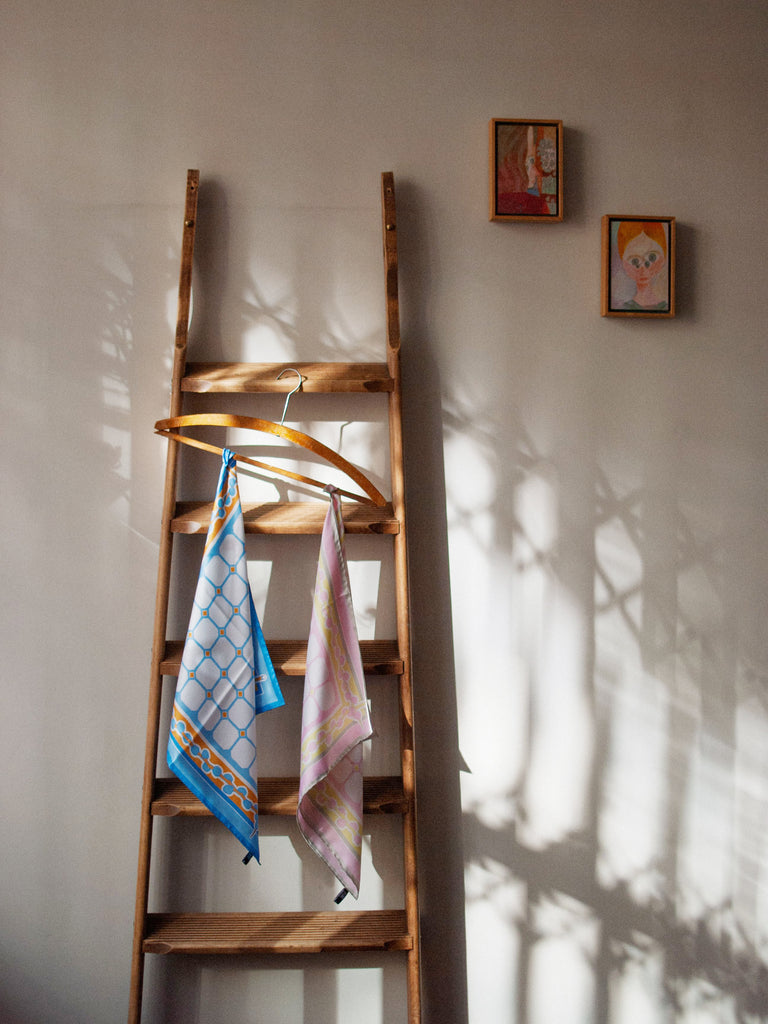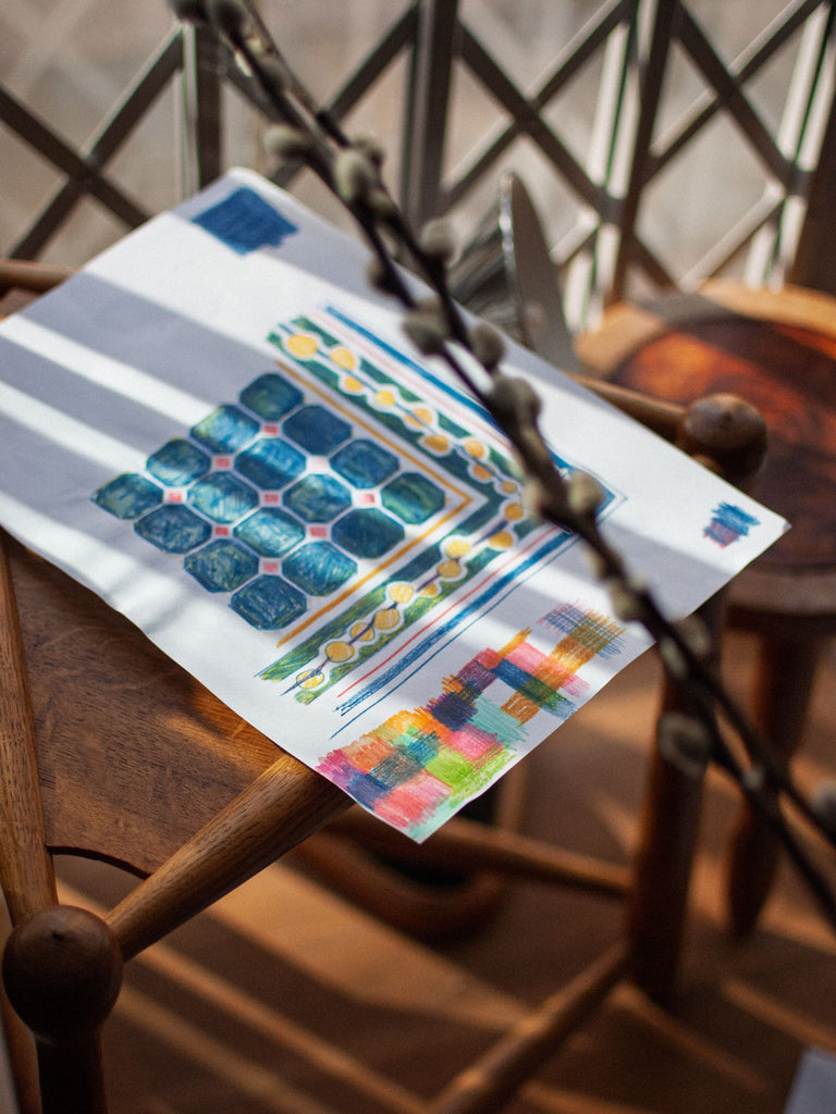 Crafted in the UK using heritage silk printing techniques dating back to the 1700s. Designed by Colenimo shop team member Ena Kato, the scarf depicts pussy-willow (Calix Cinerea) branches in the border and a decorative tile design in the centre. The colours reflect the vibrant tones of the flower market that graces our street every Sunday.