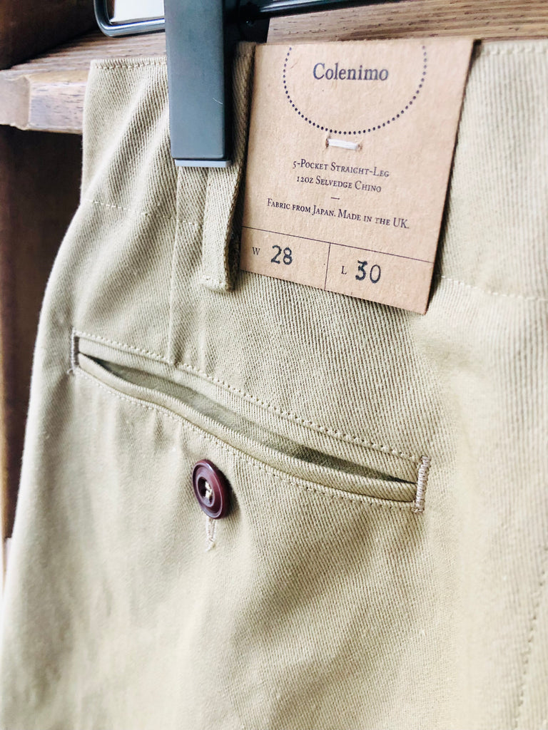 Heavyweight chinos made from 12oz Japanese selvedge twill