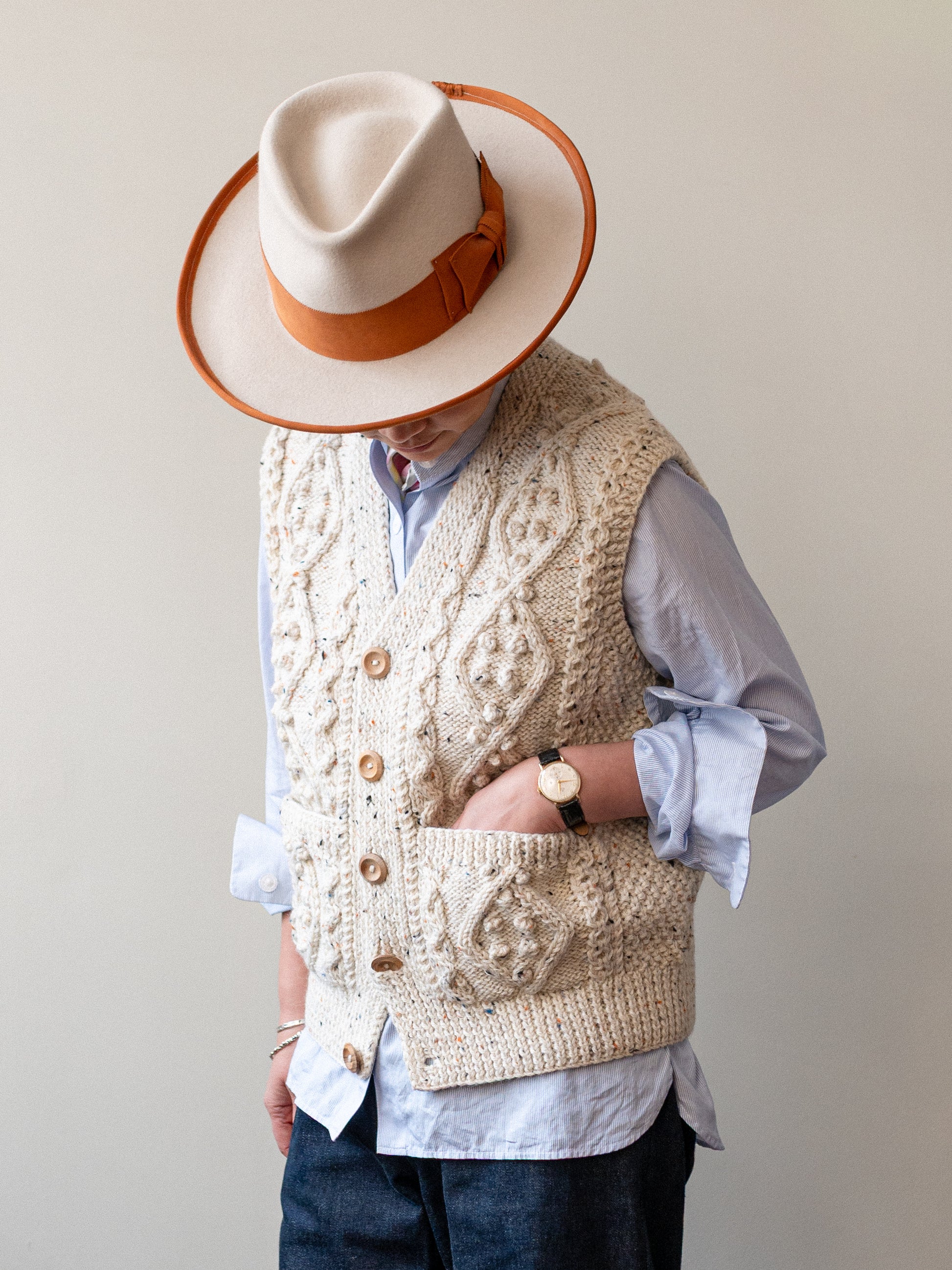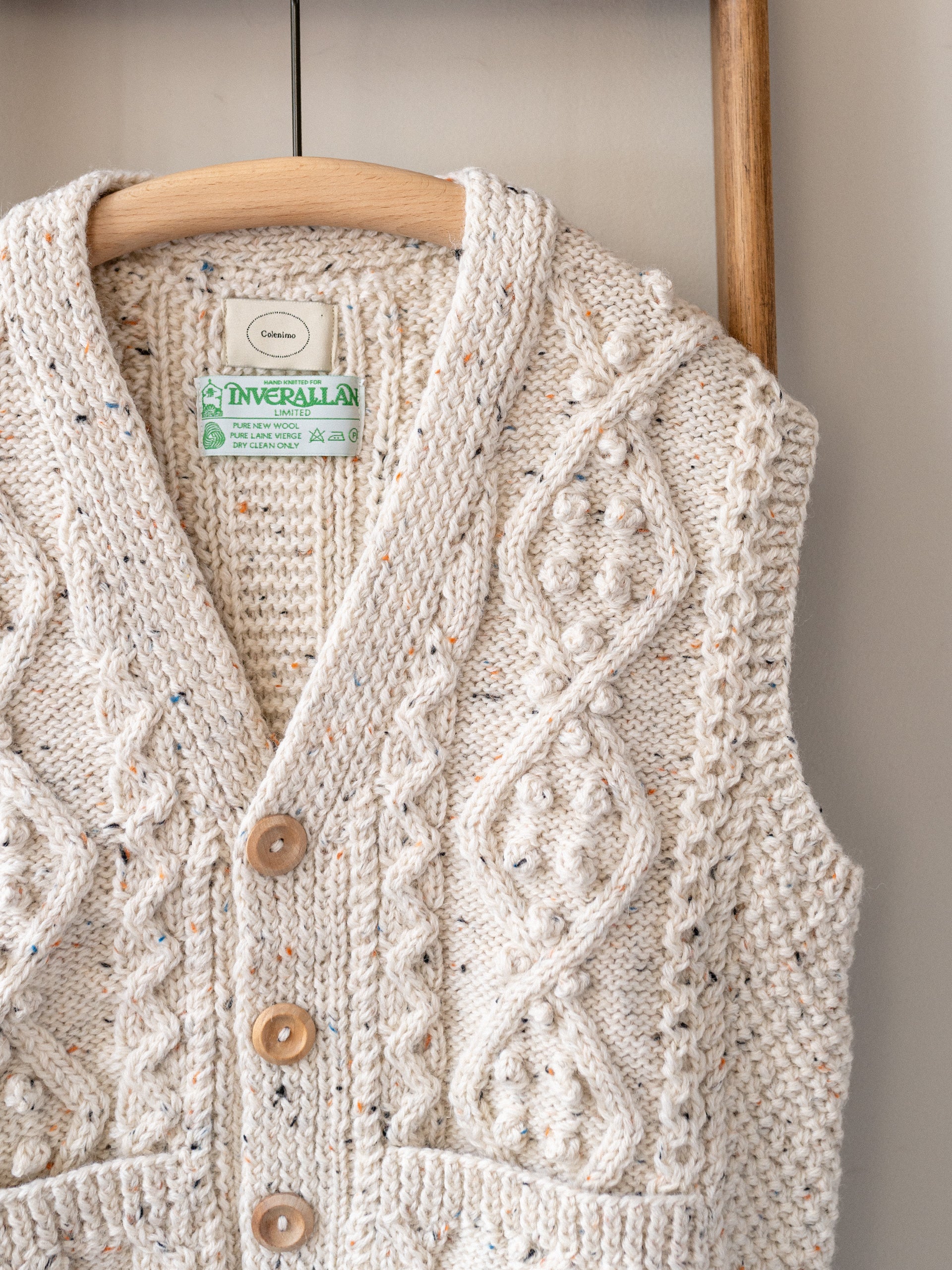 Aran V-neck Waistcoat / Ecru