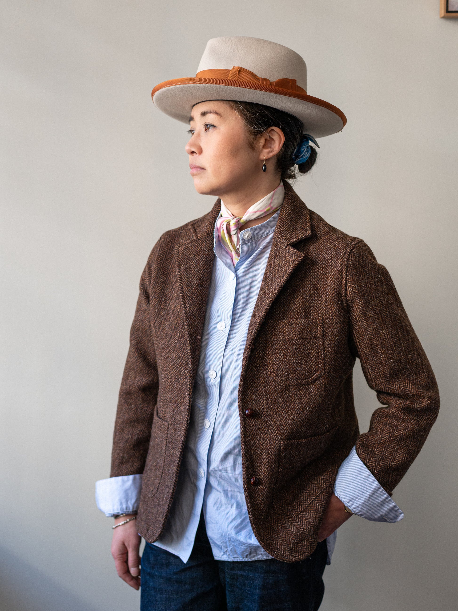 Crafted from 100% wool tweed, woven by a small family-owned Scottish mill.