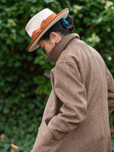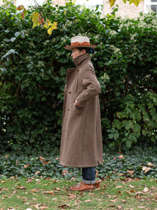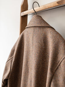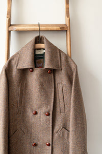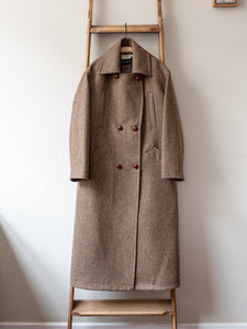 Long Peacoat / Brown Herringbone Tweed