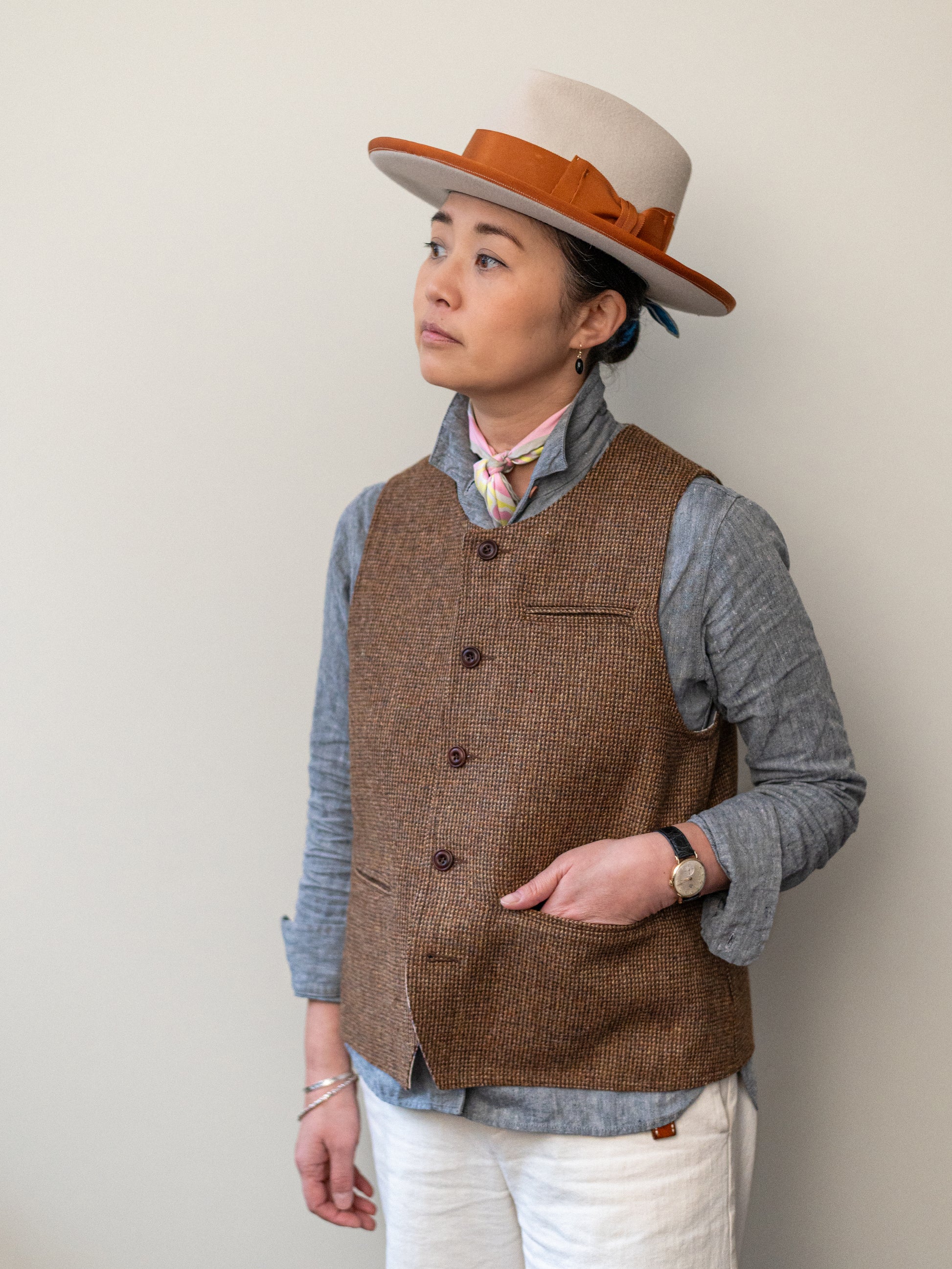 Reversible Tweed Vest / Brown Tweed