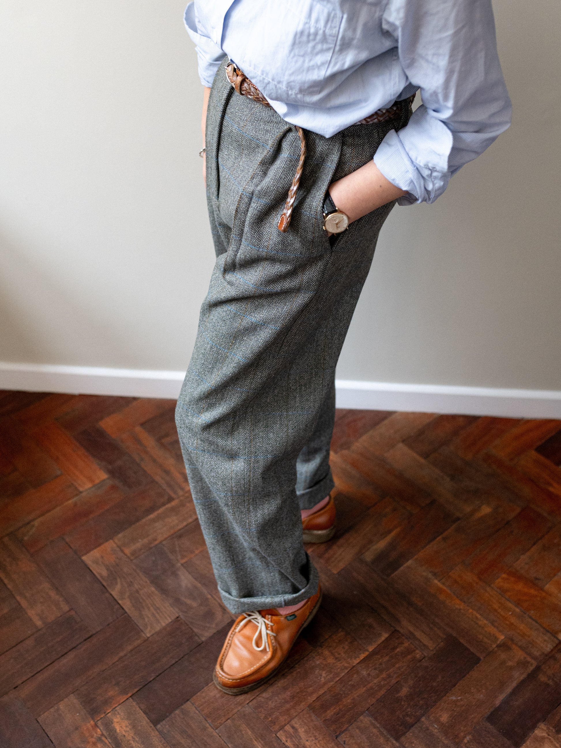 Scottish Merino Wool Trouser / Grey Herringbone