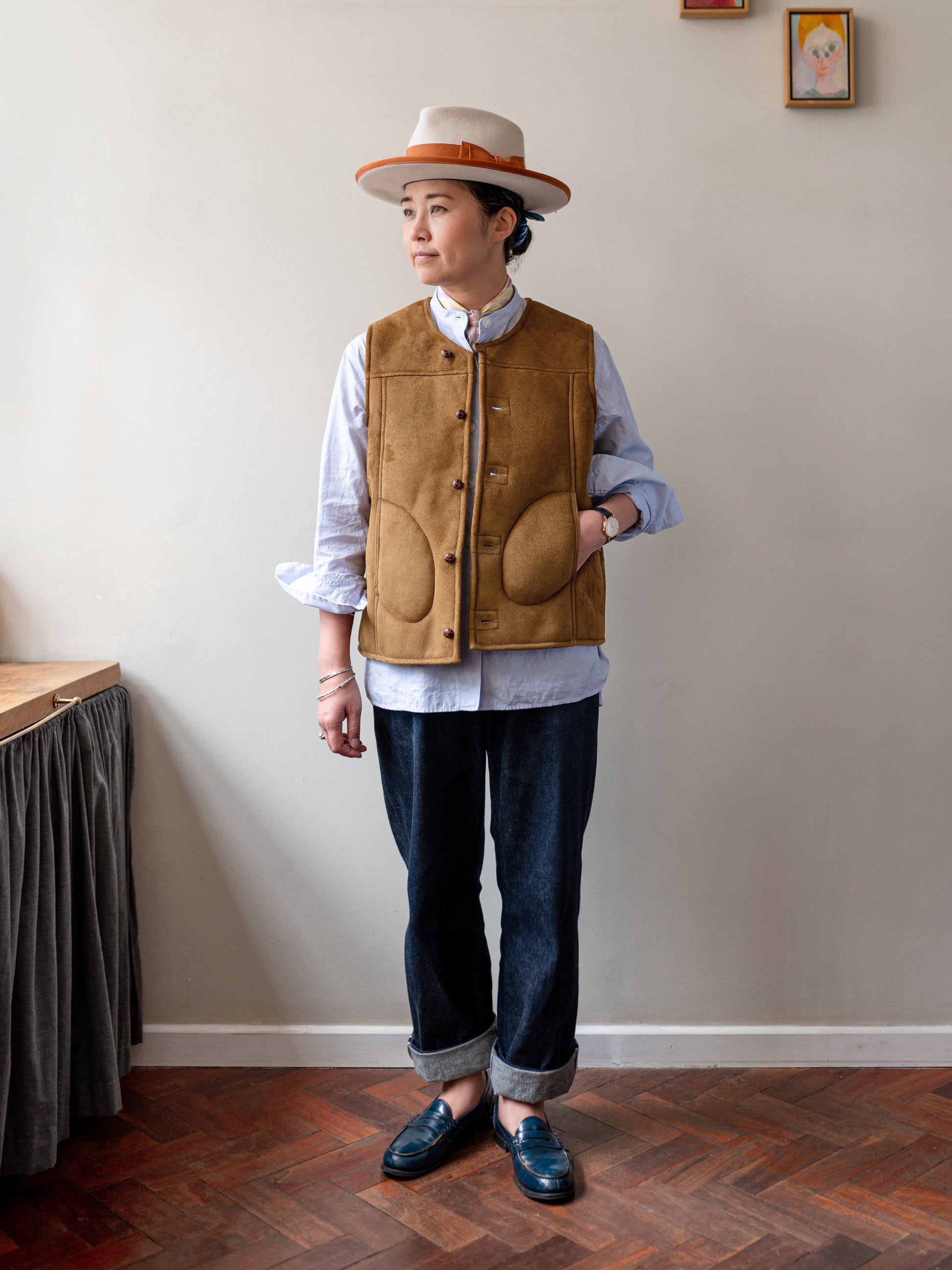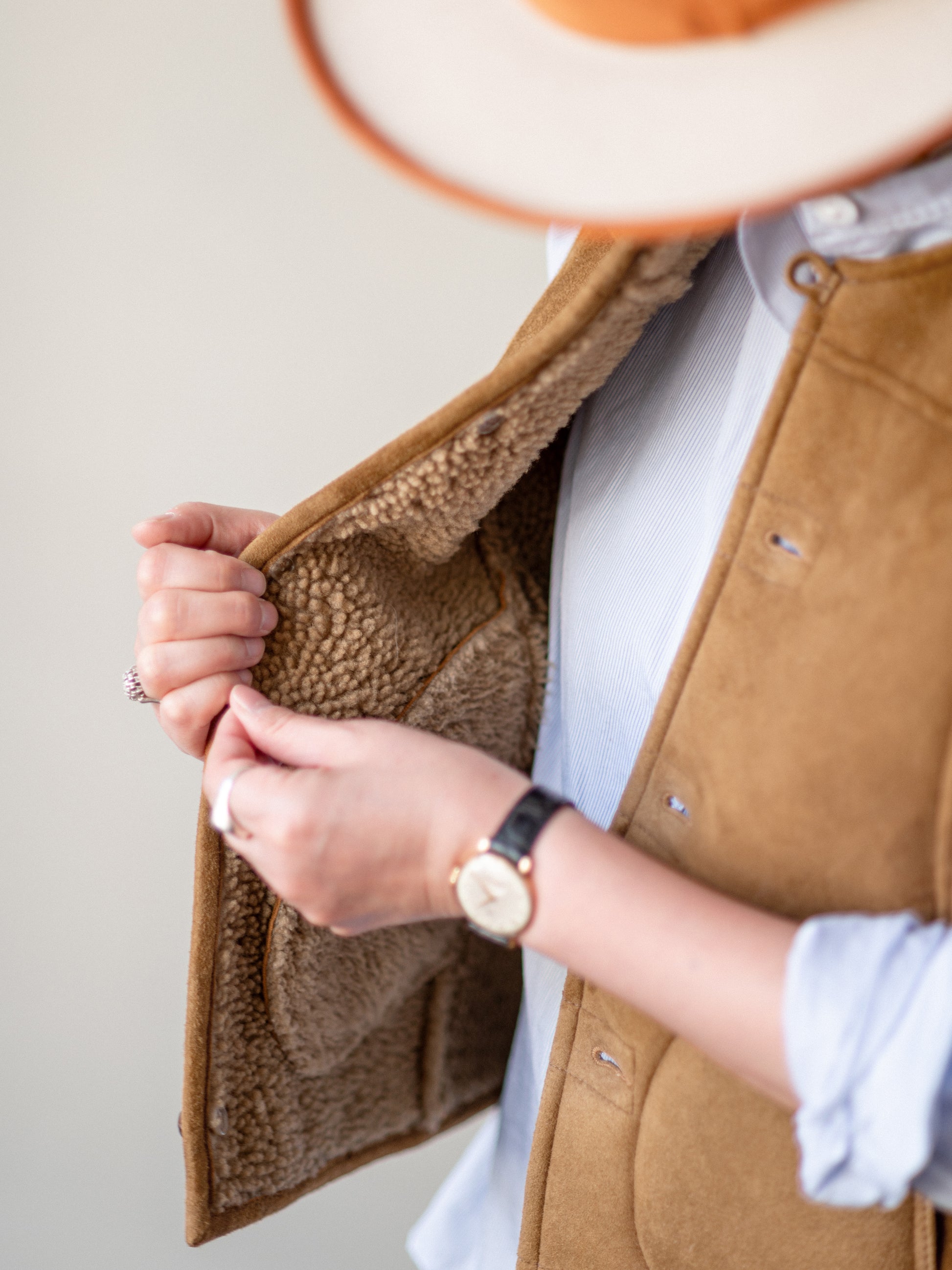 The real sheepskin gilet – a Colenimo classic since 2019. Made by the same factory in North London for over six years, these shearling waistcoats are made from buttery-soft sheepskin that gets better with each wear. Perfect as a top layer during spring and autumn and as a warm insulating mid-layer in the winter months.