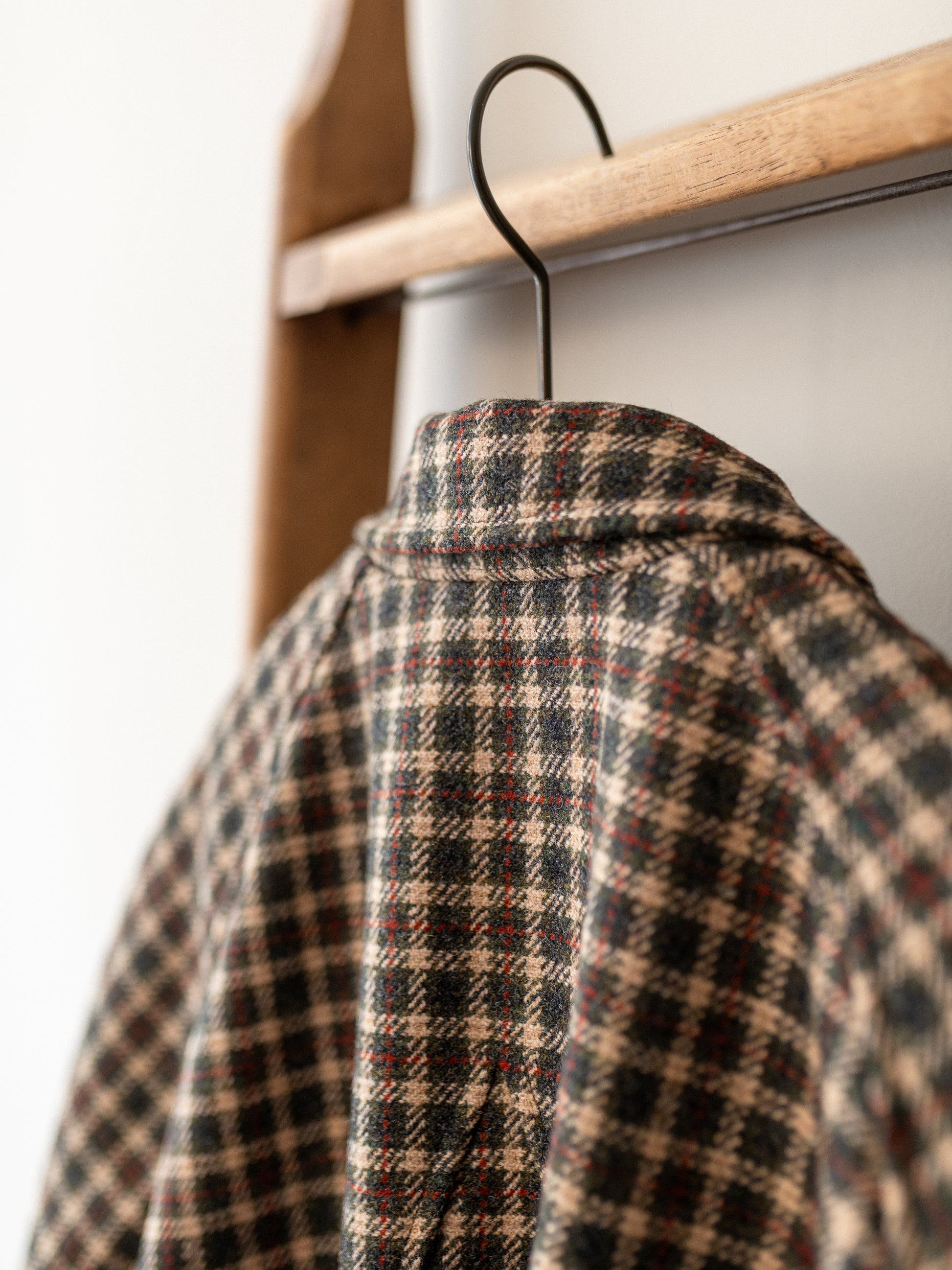 Checked fabric with a rich mix of beige, green, navy and red tones