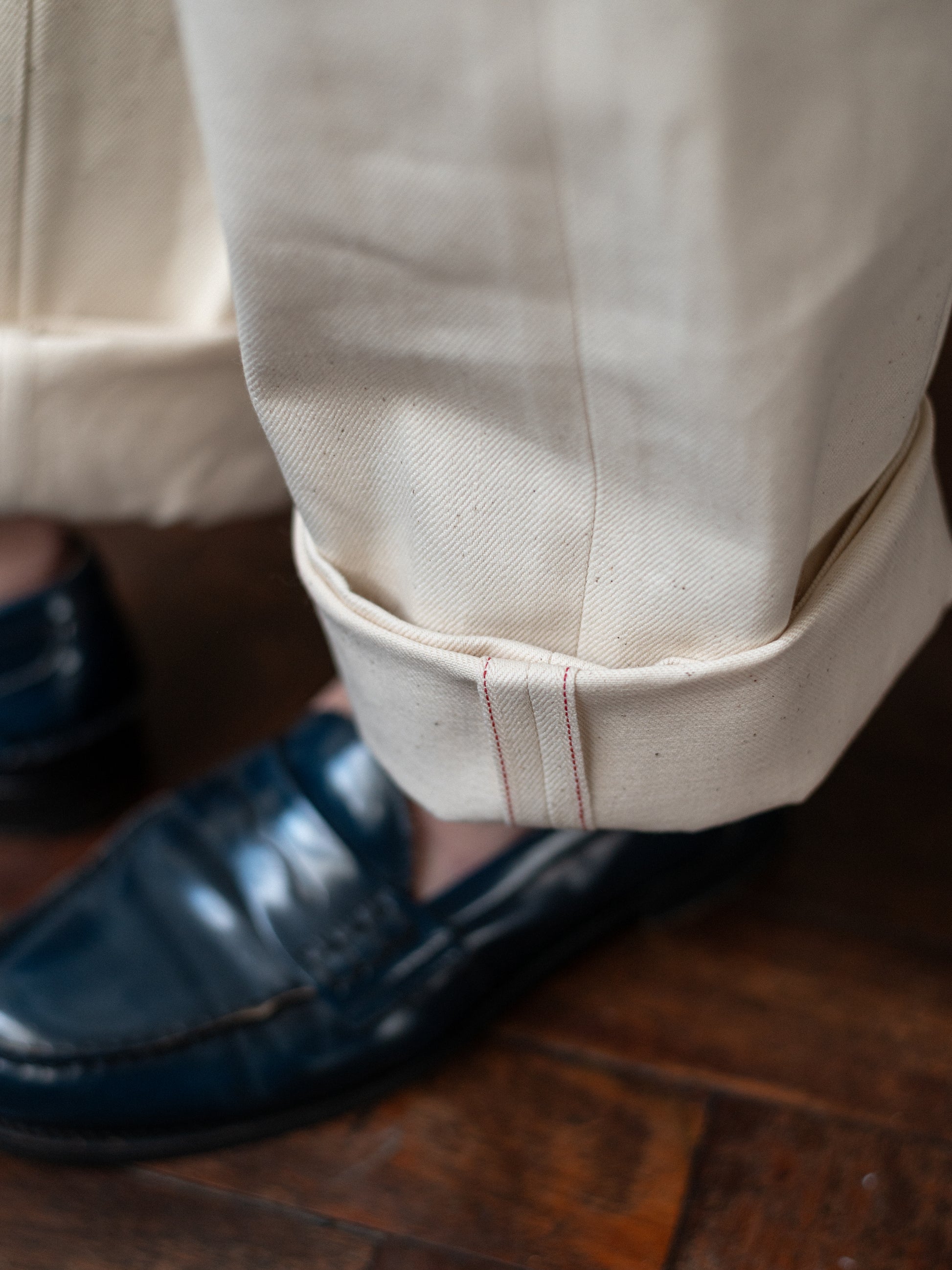 Straight-Leg Japanese Selvedge Denim Trousers / Ivory