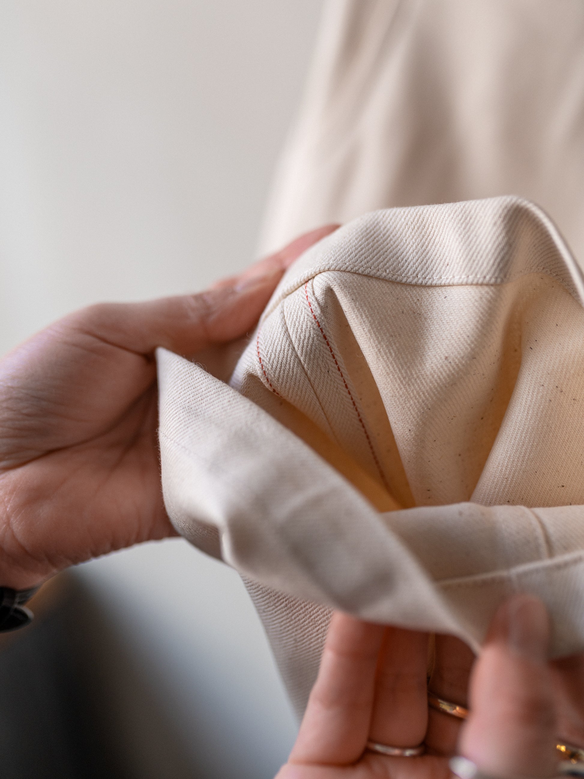 Heavyweight selvedge denim made from 100% Cotton 12oz Japanese ivory selvedge, woven in Okayama.