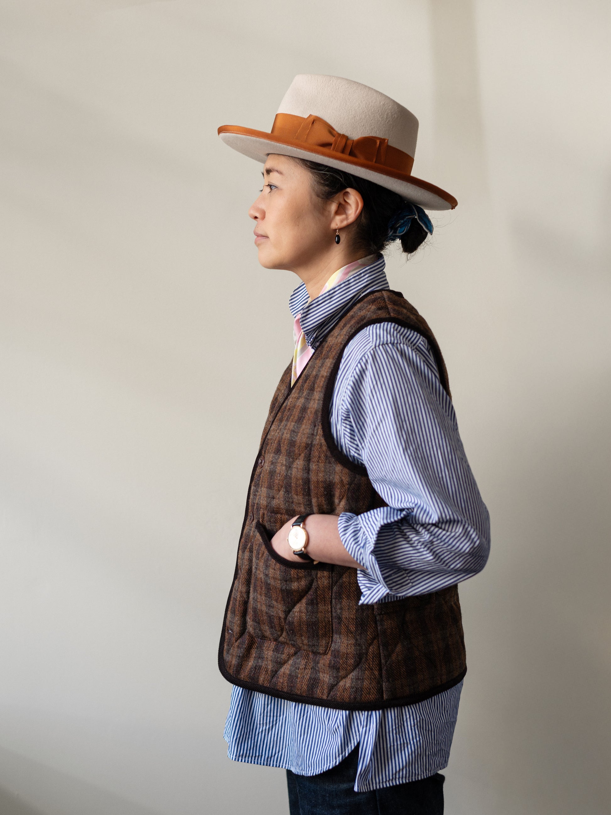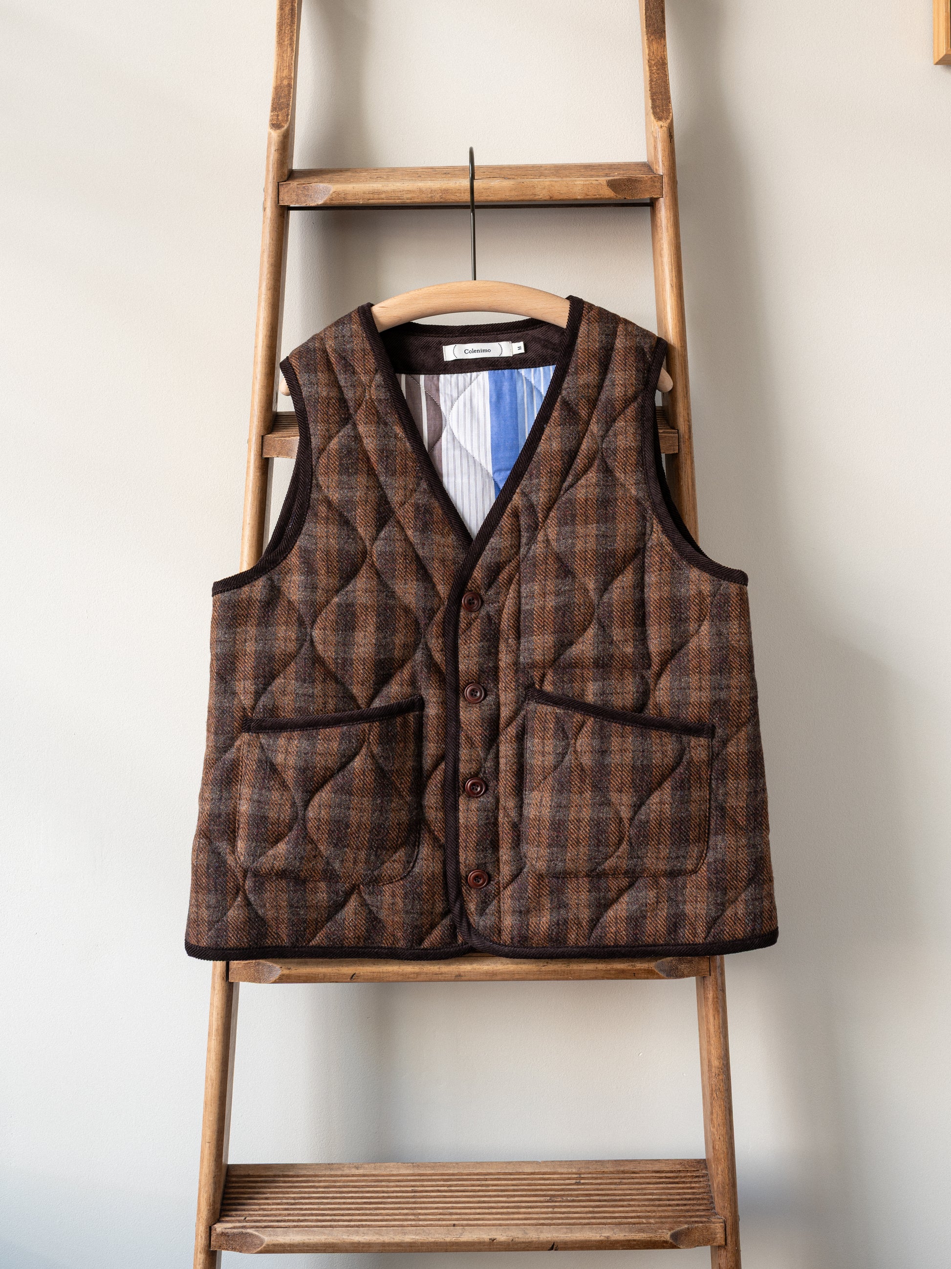 Tweed Quilted Vest / Brown Check